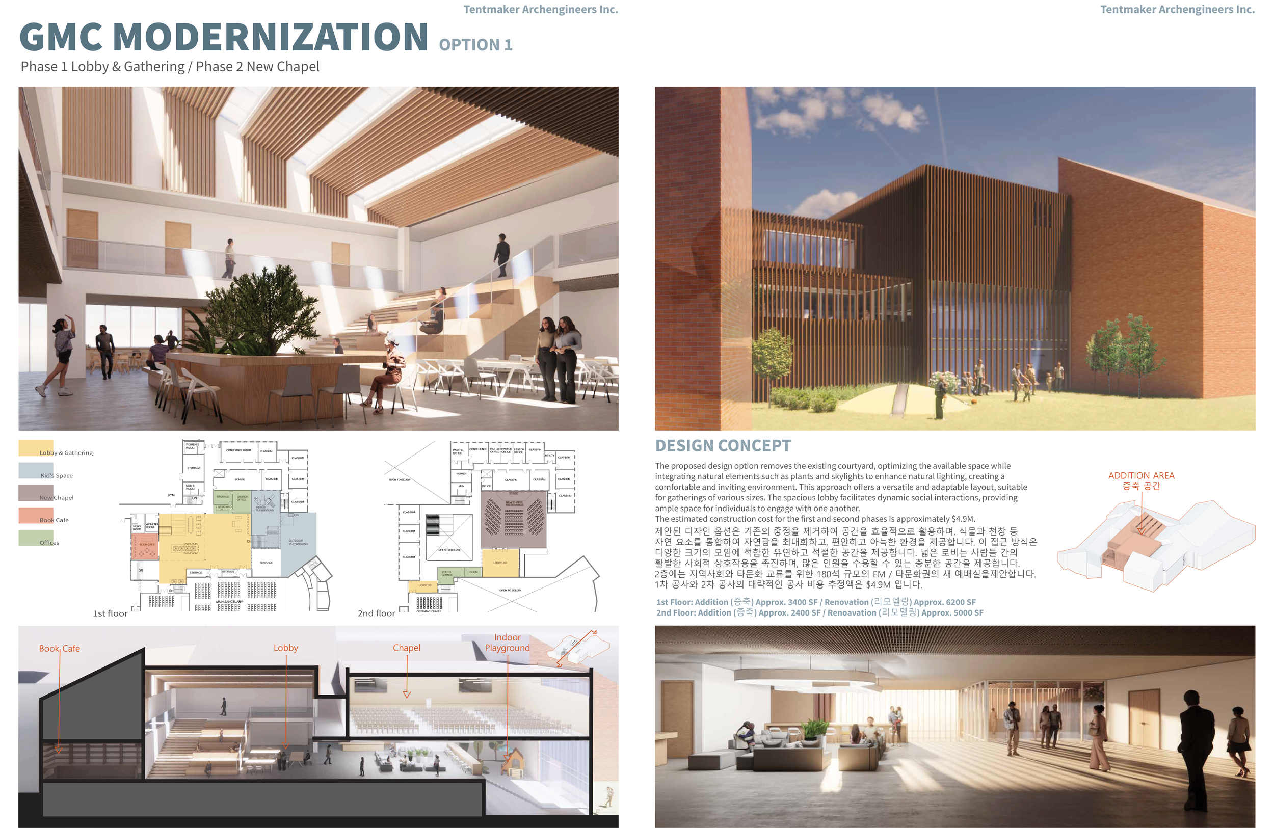 To honor the 50th anniversary of Global Mission Church, our team proposed "GMC Modernization," a visionary roadmap for the next 50 years. Recognizing the church's historical significance as a spiritual cornerstone since 1979, we sought to preserve its rich heritage while redefining its sacred spaces through a contemporary lens. Our proposal moves beyond simple renovation, focusing on a strategic modernization that aligns the church’s physical environment with its evolving mission.